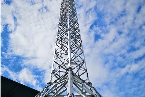 A steel structure having four vertical legs with a square-like pan dimension varying from 600mm to 2500mm, depending on heights and attachment loadings. External platform can be designed at any desired height to house antenna and microwave dishes.